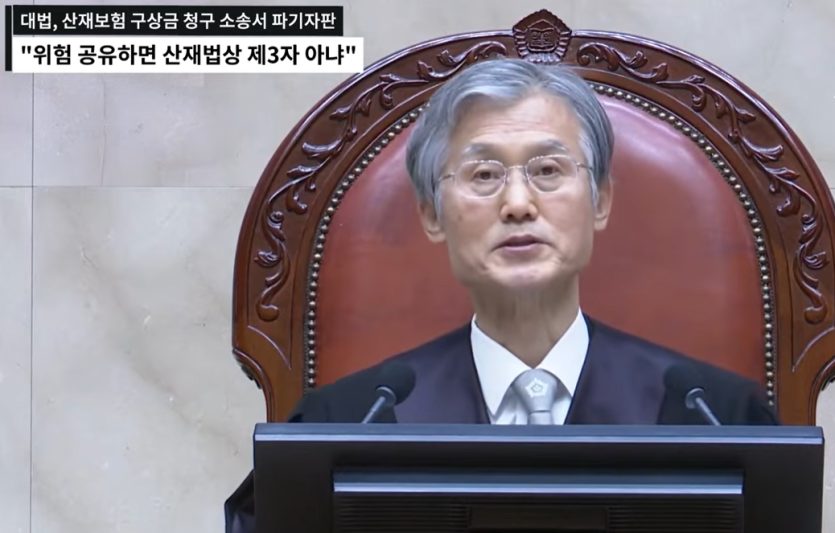 대법원 전원합의체는 2026년 1월 22일 산업재해보상보험법(산재보험법) 제87조 제1항에서 정한 ‘제3자’ 판단 기준을 종전의 보험료 부담 관계에서 ‘위험 공유 여부’ 중심으로 재정립했다고 판결했다.